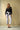 Pantalón recto tobillero con cinturilla confeccionado en crepe elástico. Detalle de falso bolsillos circulares en contraste negro. Cierre con cremallera invisible lateral. *La modelo mide 1,89m y viste la talla M.